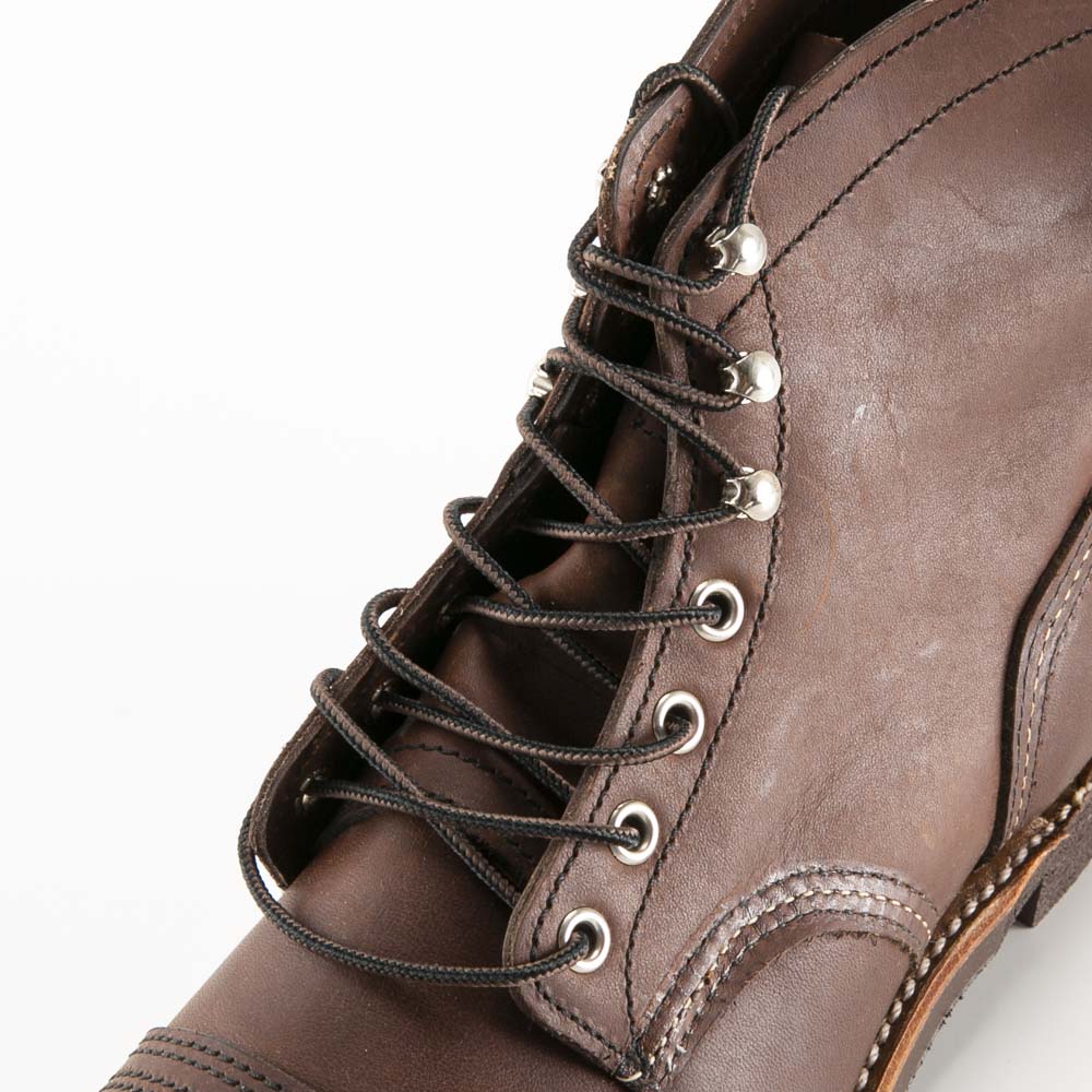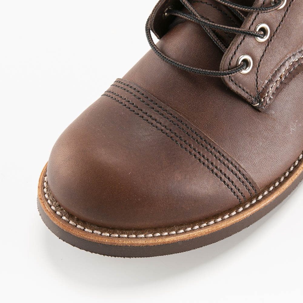 クラシックなワークブーツ特有のディテールを持つレッドウィングのアイアンレンジブーツ。鉱山や油田などで愛用されたキャップドトゥーと呼ばれるつま先を補強したデザインが用いられています。