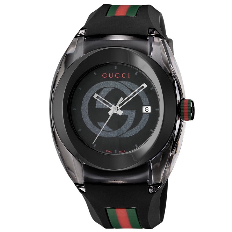 レザー部分には「GUCCI」の文字。細部のデザインにもこだわっています。